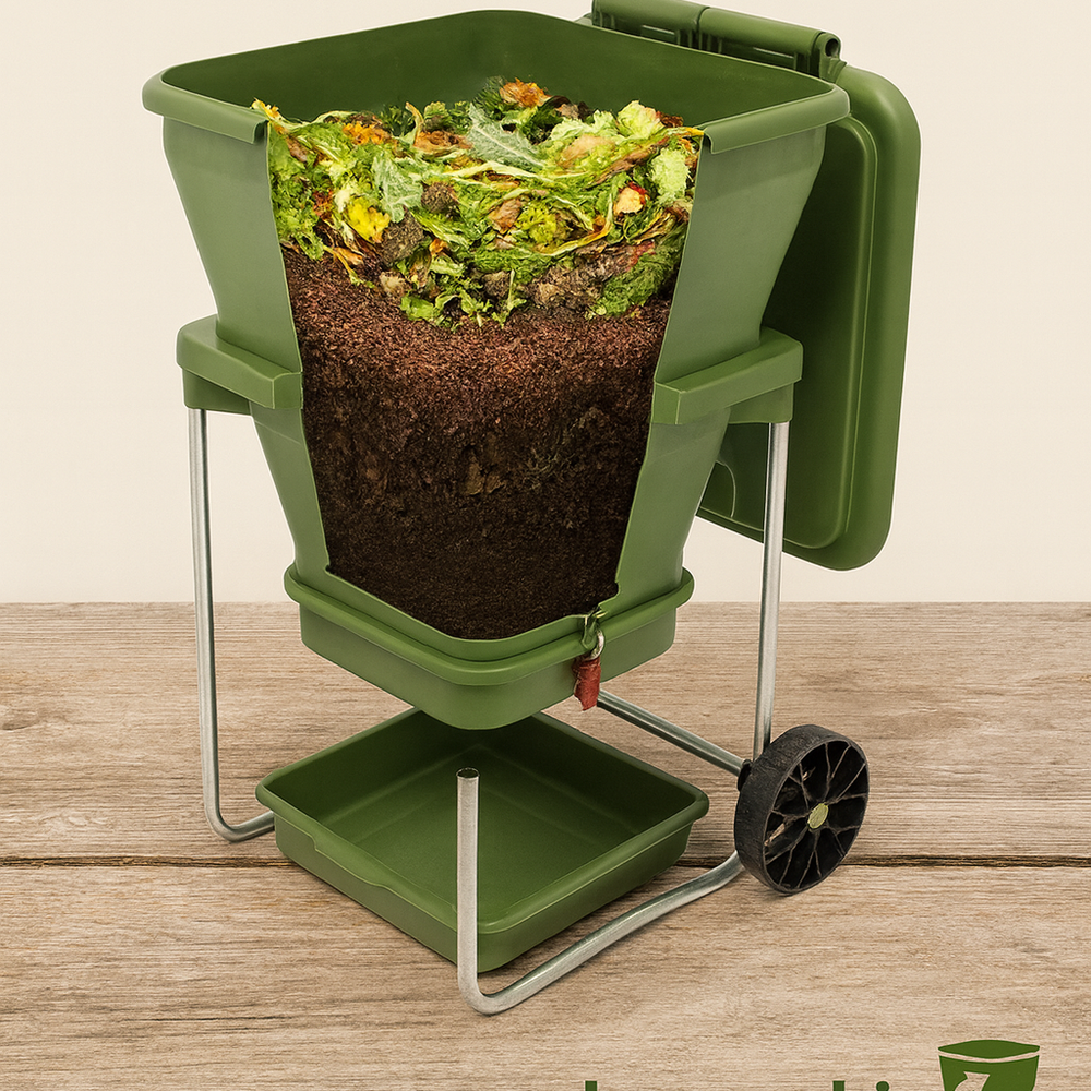 High-quality construction: The bin is manufactured in UV-stabilised, food-grade plastic on a zinc-plated frame, making it more robust than black tray-based farms. The Hungry Bin is designed for decades of service, not a short-lived product that will end up becoming waste itself. Designed and manufactured in New Zealand, from high-quality virgin food-grade plastic which does not contain heavy metals or BPAs as many recycled plastics do. The product should last 25-35 years under normal use.