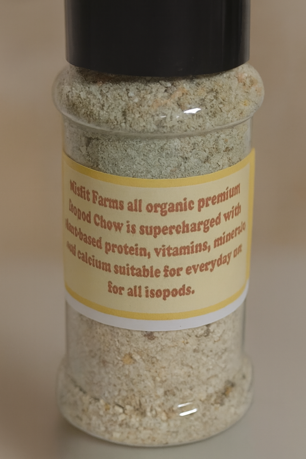 Misfit Farms Iso Happy Premium Chow comes in with a 3.3-ounce shaker bottle that can be reused or recycled. It is suitable for everyday use with all isopods and is safe for any other tank mates isopods may share their home with.