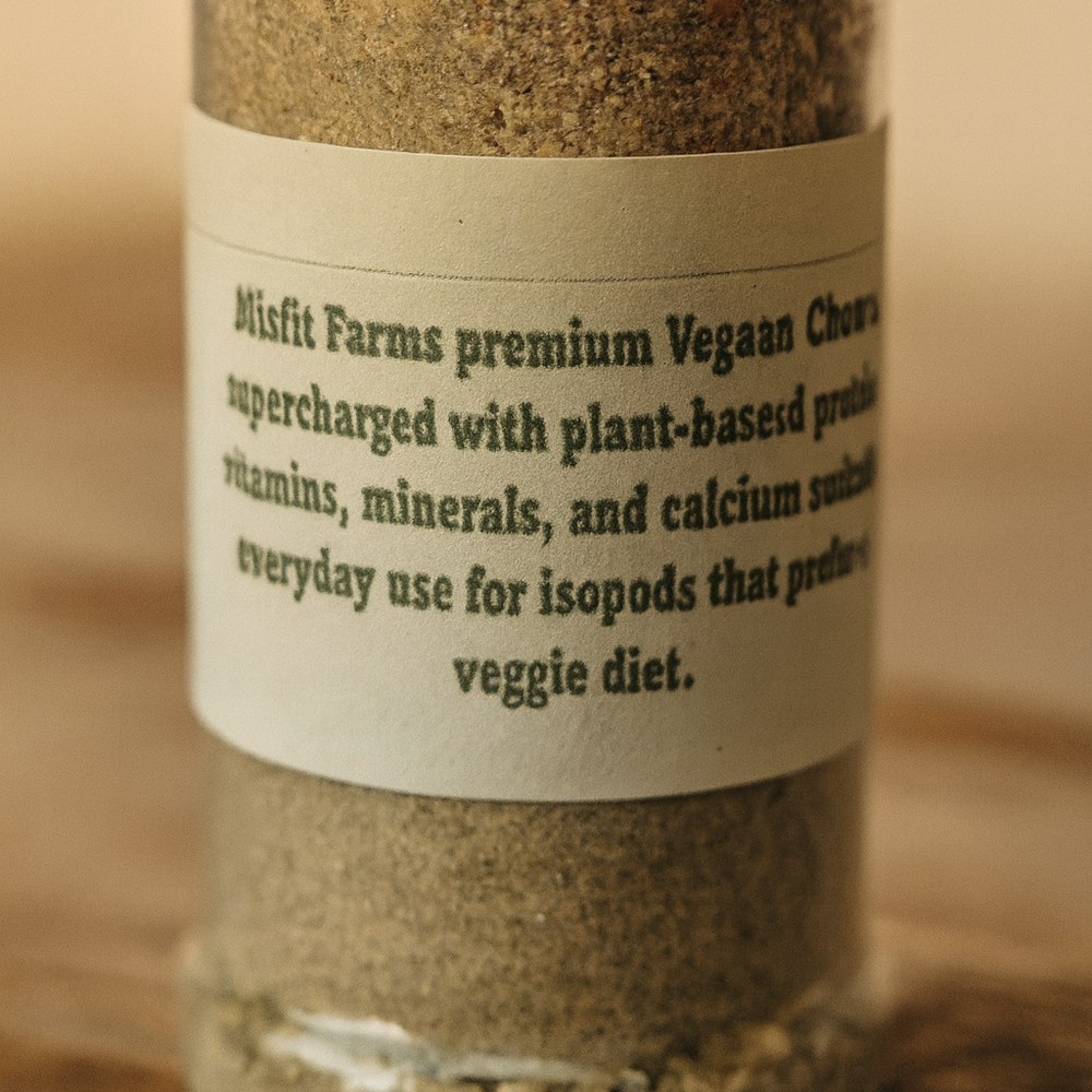 Misfit Farms Iso Vegan Premium Chow comes in a 3.3-ounce shaker bottle that can be reused or recycled. It is suitable for everyday use with all isopods but is formulated specifically for species that prefer more of a green diet than a protein-packed one. Iso Vegan chow is safe for any other tank mates isopods may share their home with.