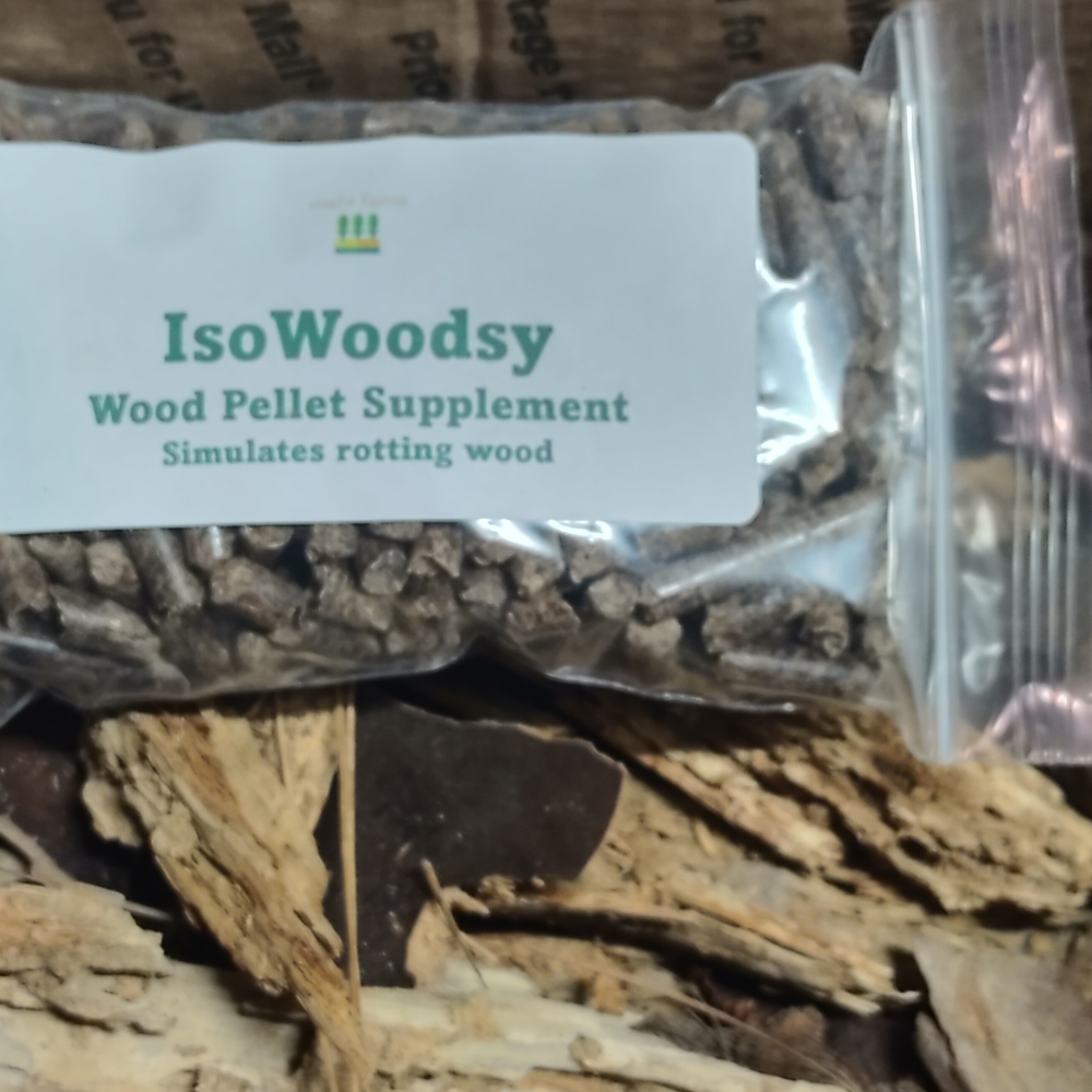 Box O’ Rot is packed with carefully selected organic pieces of wood from our forest, perfect for mimicking your isopods’ natural environment. Whether they’re hiding, nibbling, or exploring, your isopods will feel right at home. As a special bonus, each box also contains one package of our popular pellet wood supplement IsoWoodsy to give your pods multiple choices to feast on.