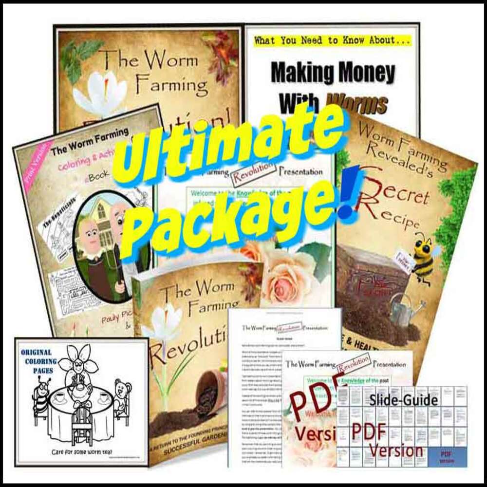 The Worm Farming Revolution Bundle (WFR’s Ultimate Bundle) is a 4-Pack e-Bundle that includes the Worm Farming Trilogy and 12 coloring pages. A total of 450 Pages of worm farming information & FUN! $5 Discount!